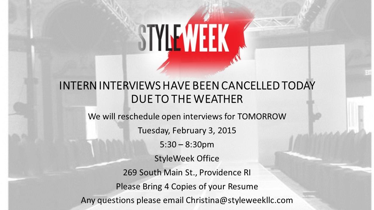 StyleWeek’s Intern interviews have been rescheduled to TODAY